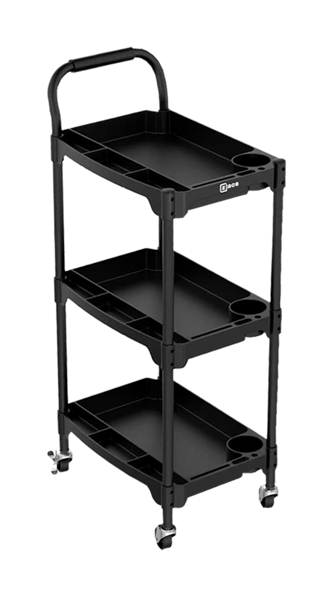 CARRINHO DETAILER PLÁSTICO ZACS  possui um design moderno e funcional. Fabricado em estrutura reforçada em metal, garantindo a segurança e a organização de seus materiais, tendo tudo o que o profissional precisa sempre a mão com praticidade e agilidade. Possui roldanas resistentes que fornecem um deslise com facilidade e sem esforço.