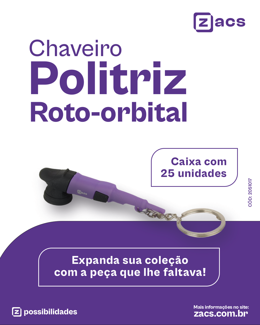 O Chaveiro Politriz ZACS é o acessório perfeito para quem vive a estética automotiva além da garagem. Inspirado em uma das ferramentas mais icônicas do detailing profissional, ele traduz performance, atitude e identidade em um item compacto, estiloso e cheio de personalidade.