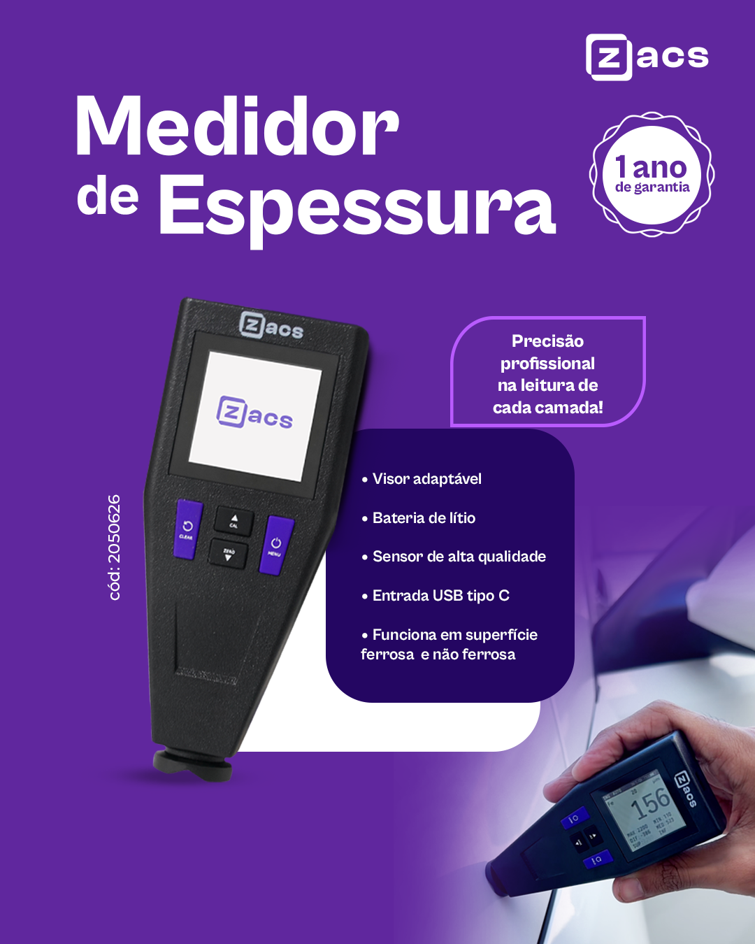 O MEDIDOR DE ESPESSURA DE CAMADA ZACS proporciona resultados profissionais com precisão confiáveis em superfície ferrosa ou não-ferrosa. Com sensor de alta qualidade, garante leituras precisas e consistentes. Possui bateria de lítio de alta performance e entrada USB tipo C. Além disso, Possui visor adaptável proporcionando uma leitura com clareza, mesmo em ambientes com