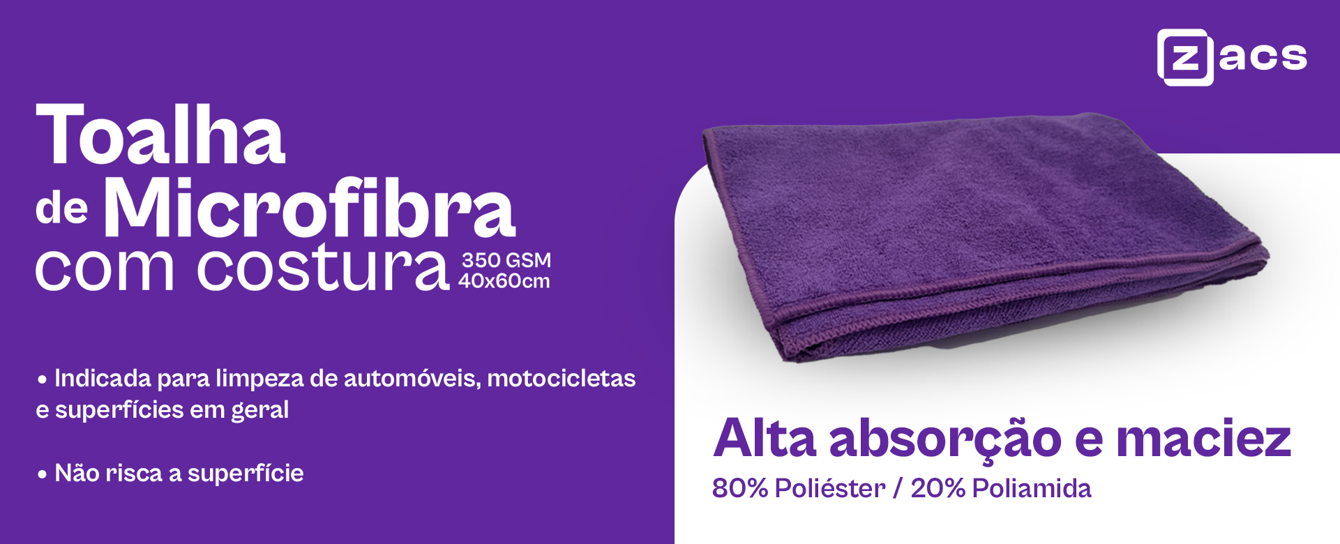 A TOALHA DE MICROFIBRA COM COSTURA ZACS 40x60cm 350GSM é indicada para limpeza de automóveis, motocicletas e superfícies em geral. Por ser fabricada com microfibras de poliéster e poliamida macias e resistentes, evita causar riscos na superfície. As costuras reforçadas garantem durabilidade, tornando-a um item essencial e de longa duração.